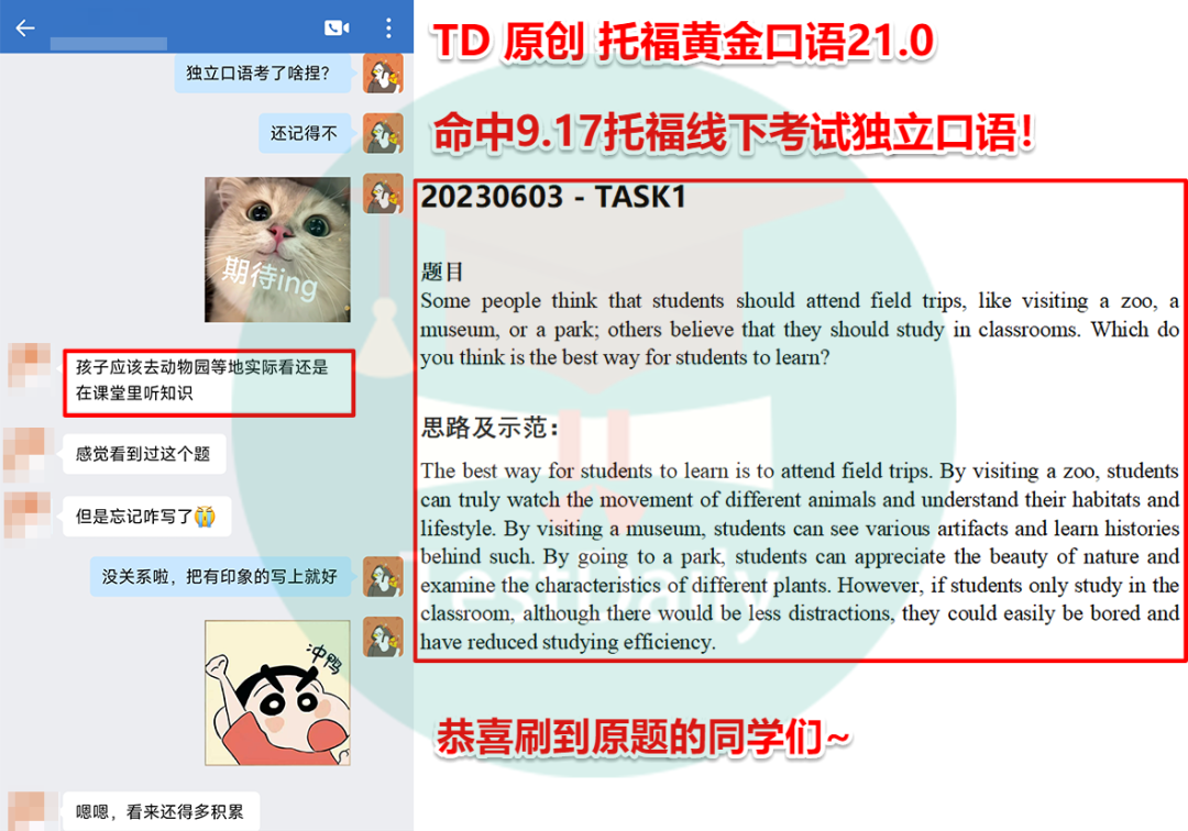 TD原创 托福黄金口语21.0命中9.17托福线下考试独立口语!恭喜刷到原题的同学们~
