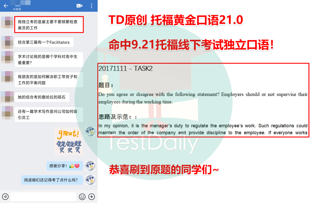 TD原创 托福黄金口语21.0命中9.21托福线下考试独立口语!恭喜刷到原题的同学们~