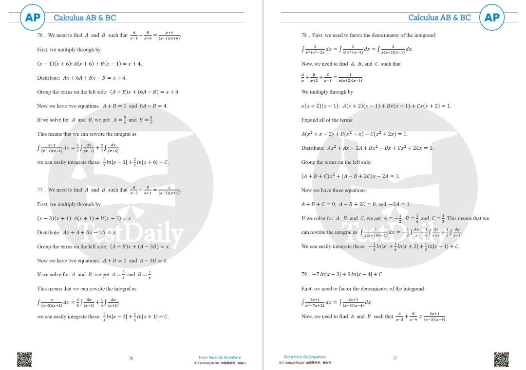 《AP微积分求导/积分100题》是专门为了解决同学们在备考和学习过程中,因为基础公式记不住,复杂方法不会用,导致学习进度停滞不前而诞生的。