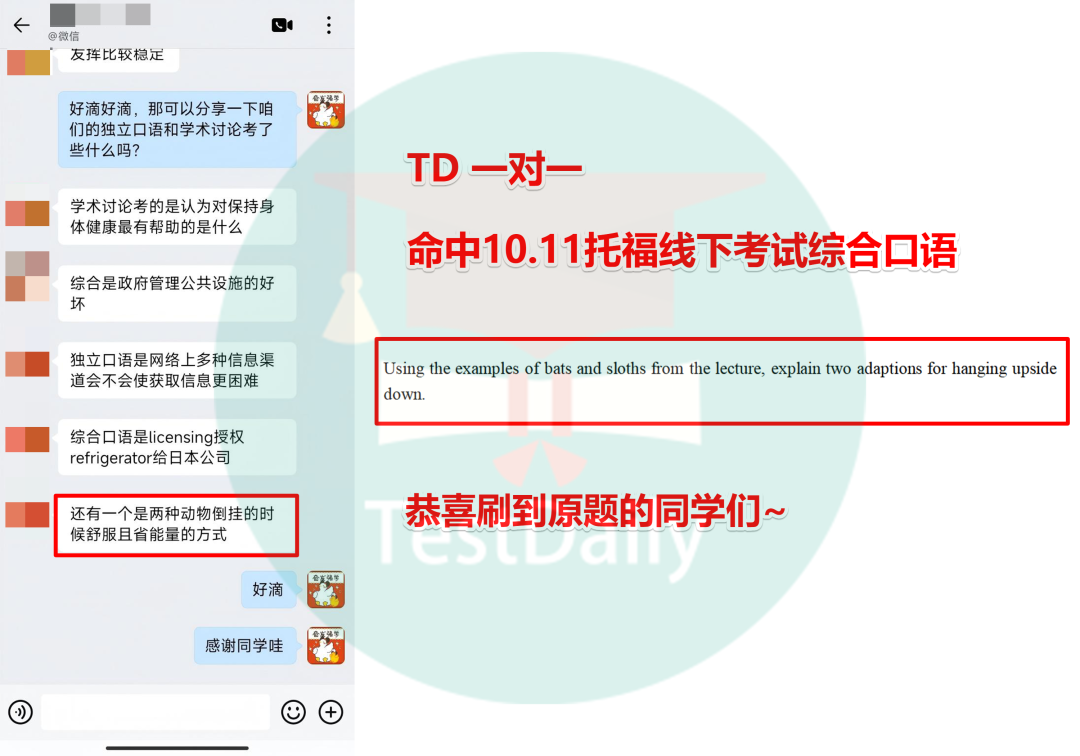 TD 一对一命中10.11托福线下考试综合口语×2!