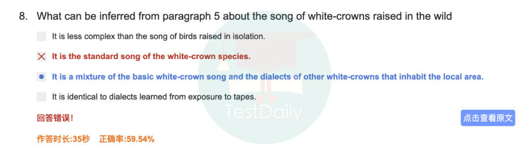 由于小O同学的备考时间非常的紧张。所以第一节课的课堂诊断就非常的重要。结合课前测以及第一节课的表现来看,目前小O同学对阅读中不同题型考查的侧重点并不了解,还没有掌握具体的做题技巧。比如下图展示的是小O同学的课前测中出错的题目 -- 推断题,出错原因主要是因为题型技巧没有掌握。