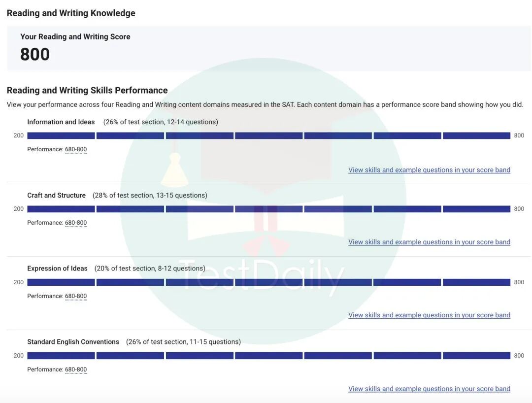 👉2)点击「See Score Details」即可查看分数详情。报告无法查看错了哪些题,不过在页面下方找到「Knowledge and Skills」,可以看到不同能力板块的分数阶段,根据报告上各个题型的分数,可以判断哪些题型掌握的不够好,方便后续查缺补漏。如需老师帮助详细分析出分报告,可滑至文末添加马甲咨询。