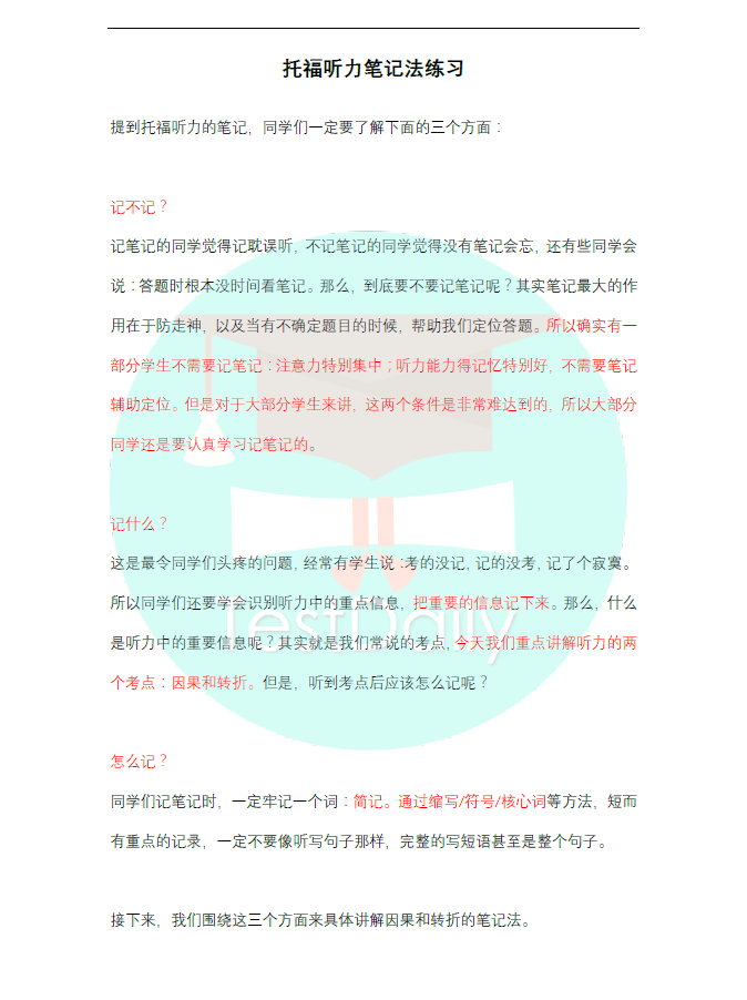 以上就是我们今天重点讲解的因果和转折关系的笔记法,同学们掌握了记什么以及怎么记,一定能帮助大家在有限的时间里,又快又准确地定位考点,答对题目。当然,听力笔记还有很多其他考点的记录方法,我们下一期再继续展开。