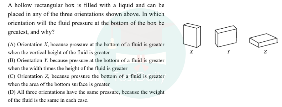 相同,因此,液体深度越大,压强越大,X的放置方式,流体的深度最大,因此答案为A选项。
