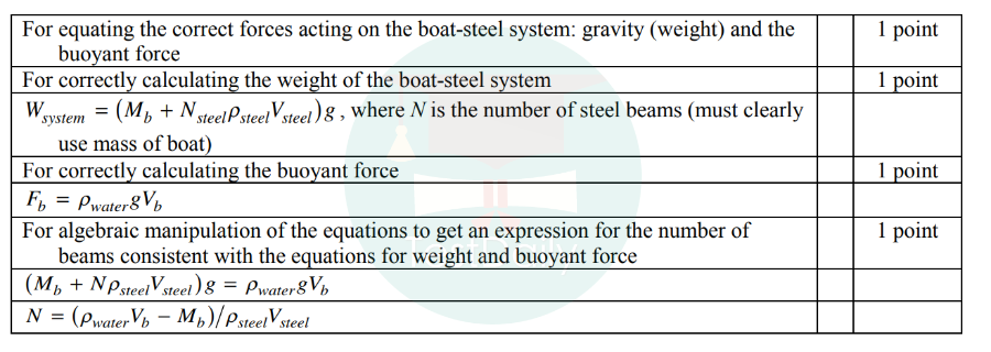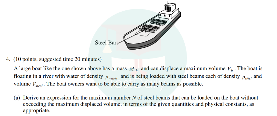 这道题目是利用牛顿第一定律,考察了物体的受力平衡。其中和物理2结合的考点便为物体受到的浮力以及物体的密度。钢条和船的总重力等于钢条和船受到的浮力。钢条的质量可以用体积乘以密度展开,浮力可以利用
