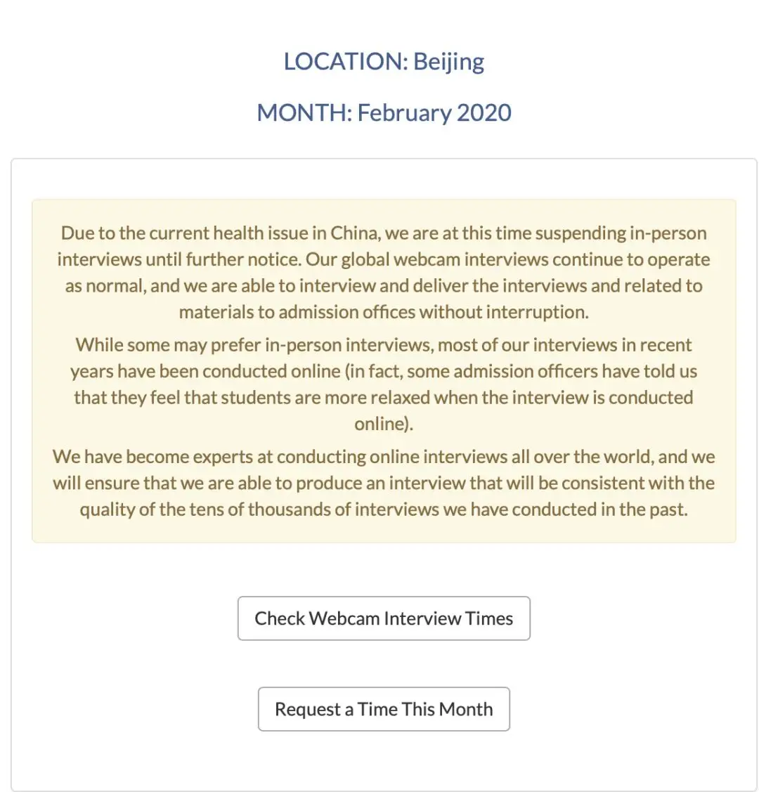 和Class of 2024相关的,除3月SAT考试变动外,香港已经取消了接下来的在港ACT及托福考试。除此之外,众多大学接受的第三方面试机构initialview已经停止了全部的线下面试工作。不过如果你还没有完成计划中的面试,可以预约initialview的在线面试,目前位置仍然相当充足。