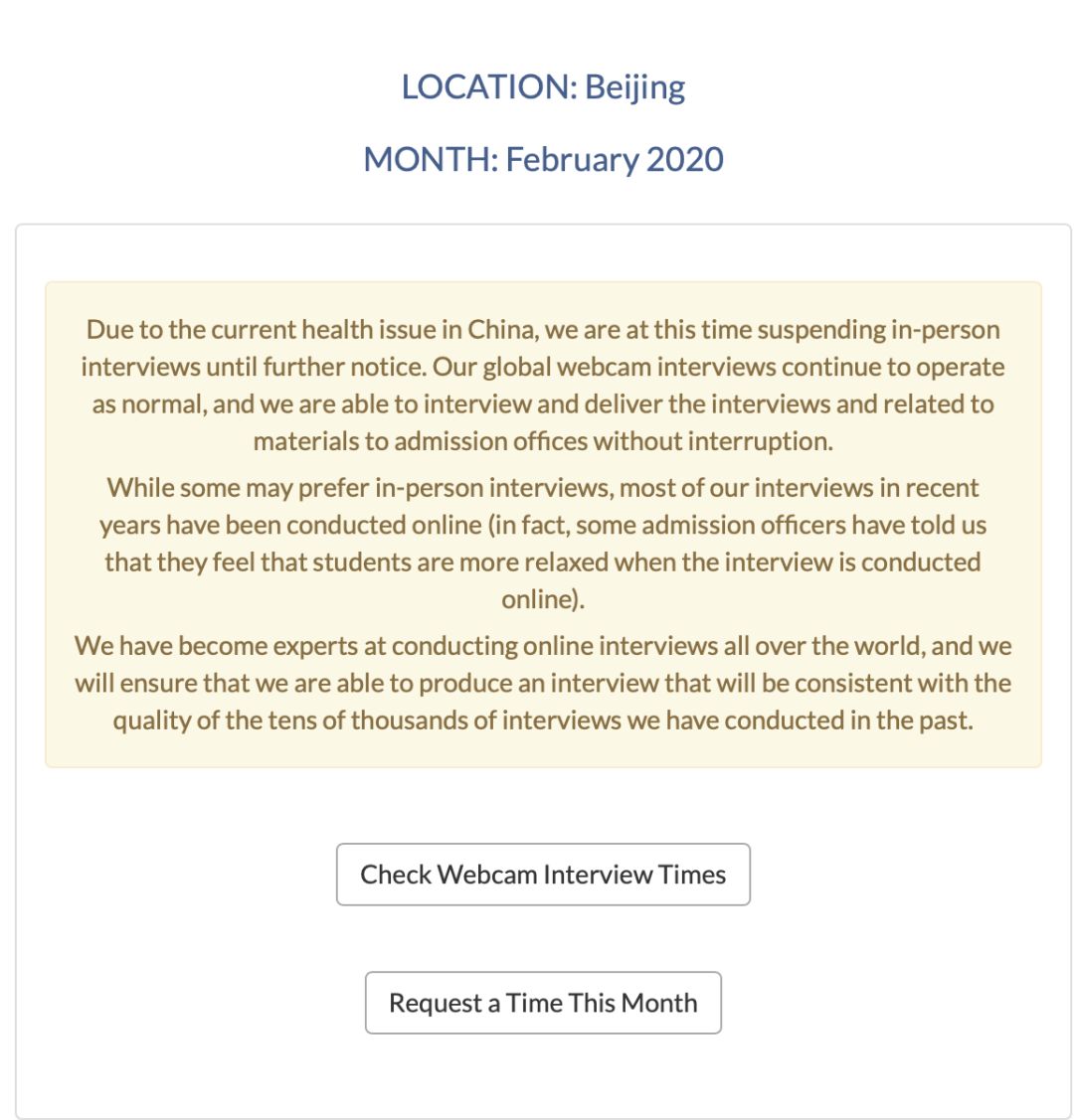 和Class of 2024相关的,除3月SAT考试变动外,香港已经取消了接下来的在港ACT及托福考试。除此之外,众多大学接受的第三方面试机构initialview已经停止了全部的线下面试工作。不过如果你还没有完成计划中的面试,可以预约initialview的在线面试,目前位置仍然相当充足。